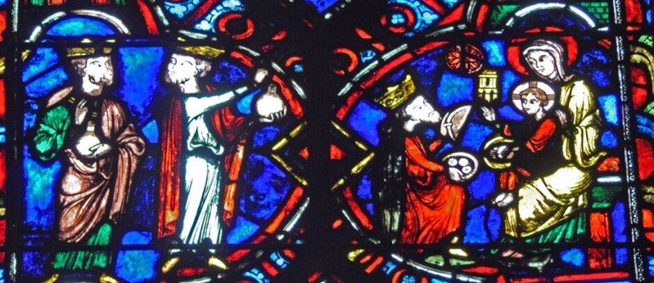 Les voici donc devant Hérode dans ce losange central du vitrail de l’enfance du Christ, à la Cathédrale Saint Pierre de Beauvais (60).