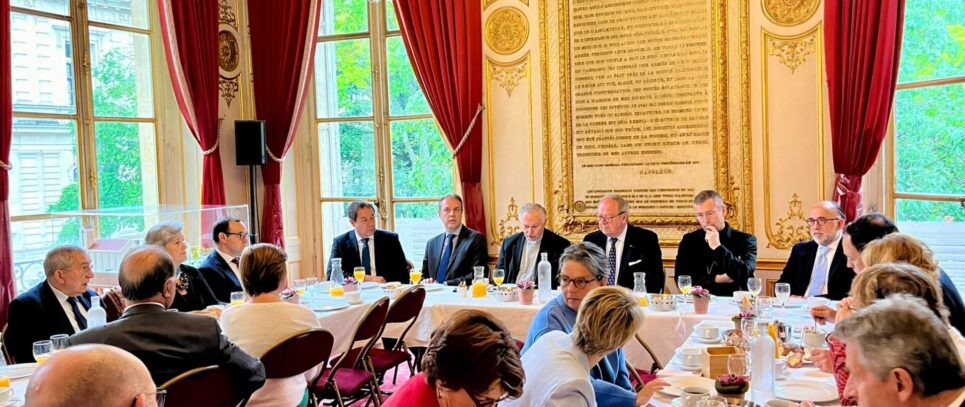 La place de l’Église dans les territoires et les institutions est un sujet qui lie l’Histoire, l’urbanisme, la culture et l’enseignement. Dans cette optique, que nos évêques, Mgr Jean-Yves Nahmias et Monseigneur Guillaume de Lisle se sont rendus au Sénat mercredi 29 mai pour présenter à un groupe de parlementaires le dynamisme du diocèse, en mettant en avant notamment les constructions de Saint-Colomban (église, institution, centre-culturel) et de l’église Sainte-Bathilde dans la Ville de Chelles.