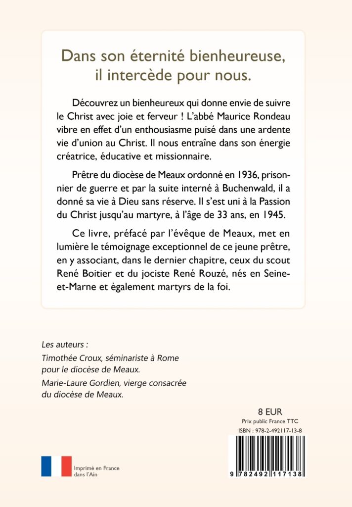 • Un prix attractif (8 €) pour diffuser très largement cet ouvrage Le Bienheureux Maurice Rondeau.